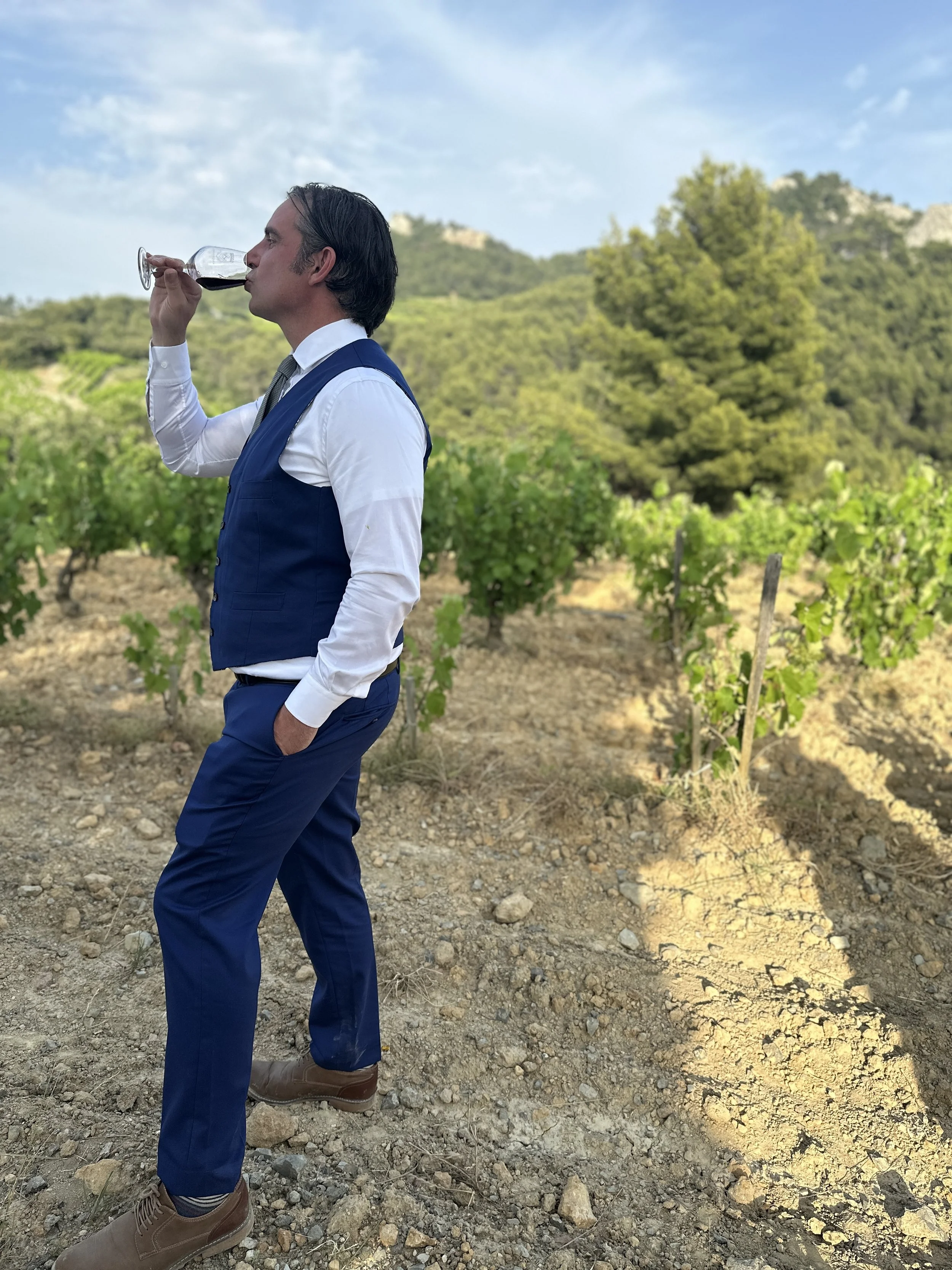 Taking a break in the hills of Gigondas for a delicious swing of wine. The hills offer some elevation which preserves freshness in sometimes overblown wine of the Southern Rhone.